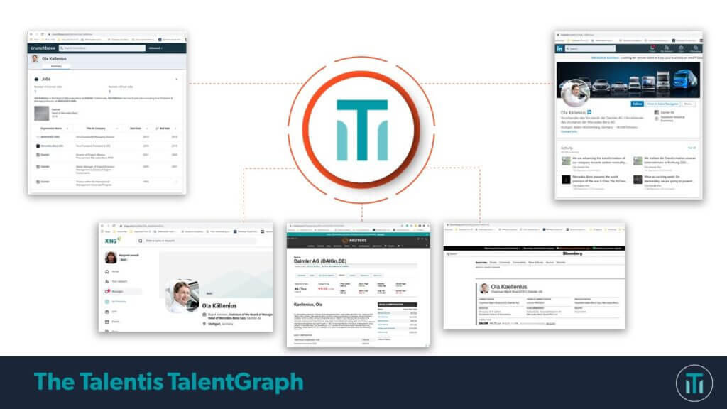 The TalentGraph continuously aggregates public data and intelligently maps relationships between executives, companies, and industries.