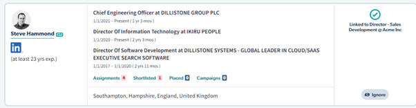● Profile not found messages – we know this is a frustration! This happens when a user searches on Talentis and clicks onto LinkedIn – but receives a “Profile not available” message. It generally happens when a person has changed his / her LinkedIn URL, perhaps as a result of a name change. The best way to find the new profile is to look up in LinkedIn using the person’s first name, company and job title. We mentioned above that we are changing how we refresh our data, and as part of this, we are expecting to dramatically reduce the number of 404 messages our users see. Various options are in testing now, and we’d expect to see results of our change on the live platform in the coming weeks.